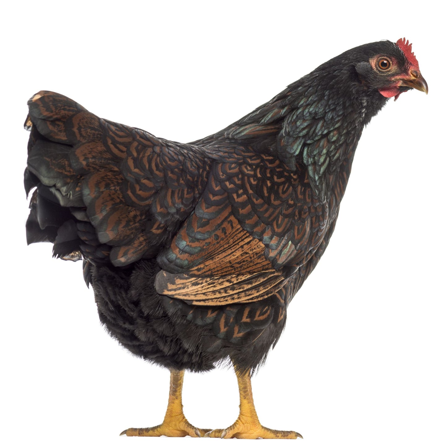 The Barnevelder hails from the Barneveld region of Holland where it is so well-known that, according to the Barnevelder Club of North America, the Barnevelder name is synonymous with the word chicken. It is sought after there for its dark "chocolate" brown eggs, and while Barnevelder eggs in this country have lost some of that dark pigment, breeders here are working hard to change that. This beautiful bird with the in-demand, beautiful "double laced" feathers is hardy and quiet and doesn't mind being confined. In short, it makes a wonderful pet!