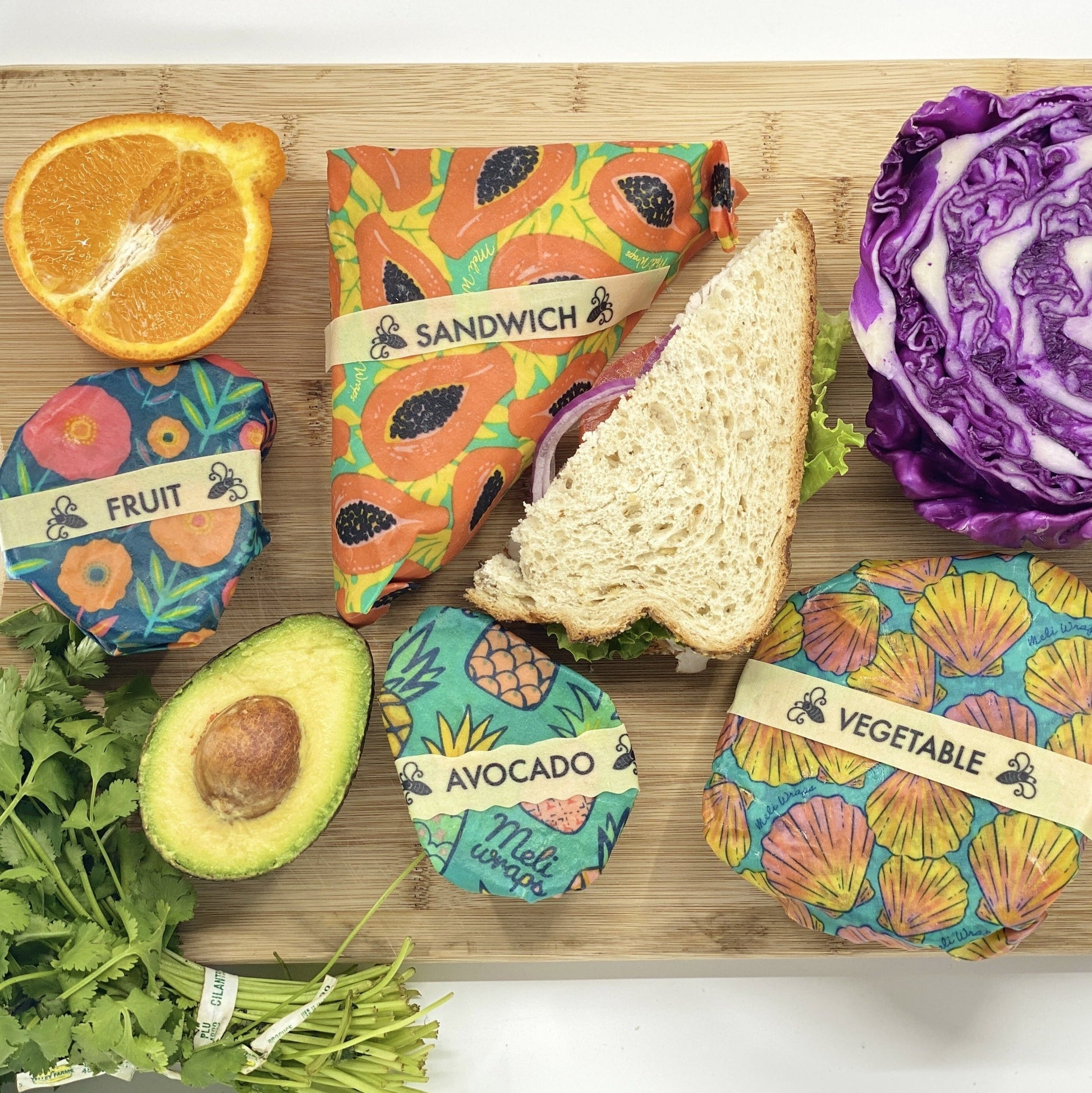 Can’t remember what you put under that Meli Wrap? We’ve got you covered! Our Buzz Wraps are the perfect solution to help you label your food items. Stick them on to your Beeswax Wraps at room temperature and then in the refrigerator. Wash them with dish soap, a sponge and cool water. They last about 1 year. They will only stick to Meli Wraps Branded Beeswax Wraps and Rolls. Each Pack contains the following Buzz Words: 2 Fruit 3 Vegetable 2 Leftovers 1 Avocado 1 Don’t Eat! 1 Cheese 1 Sandwich