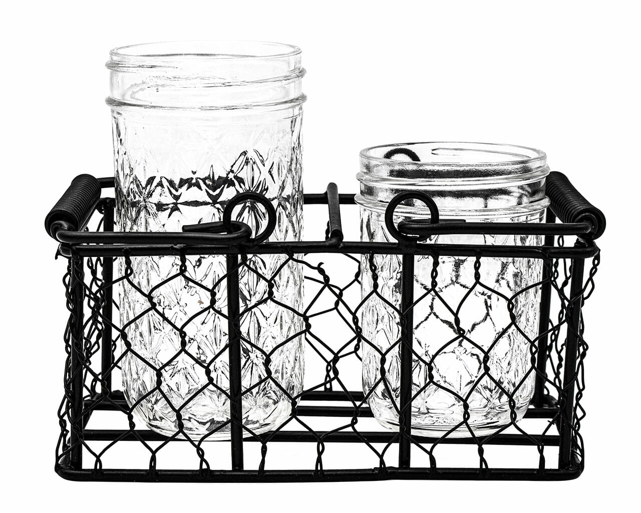 Chicken Wire Caddy for 2 Half Pint 8oz Mason Jars