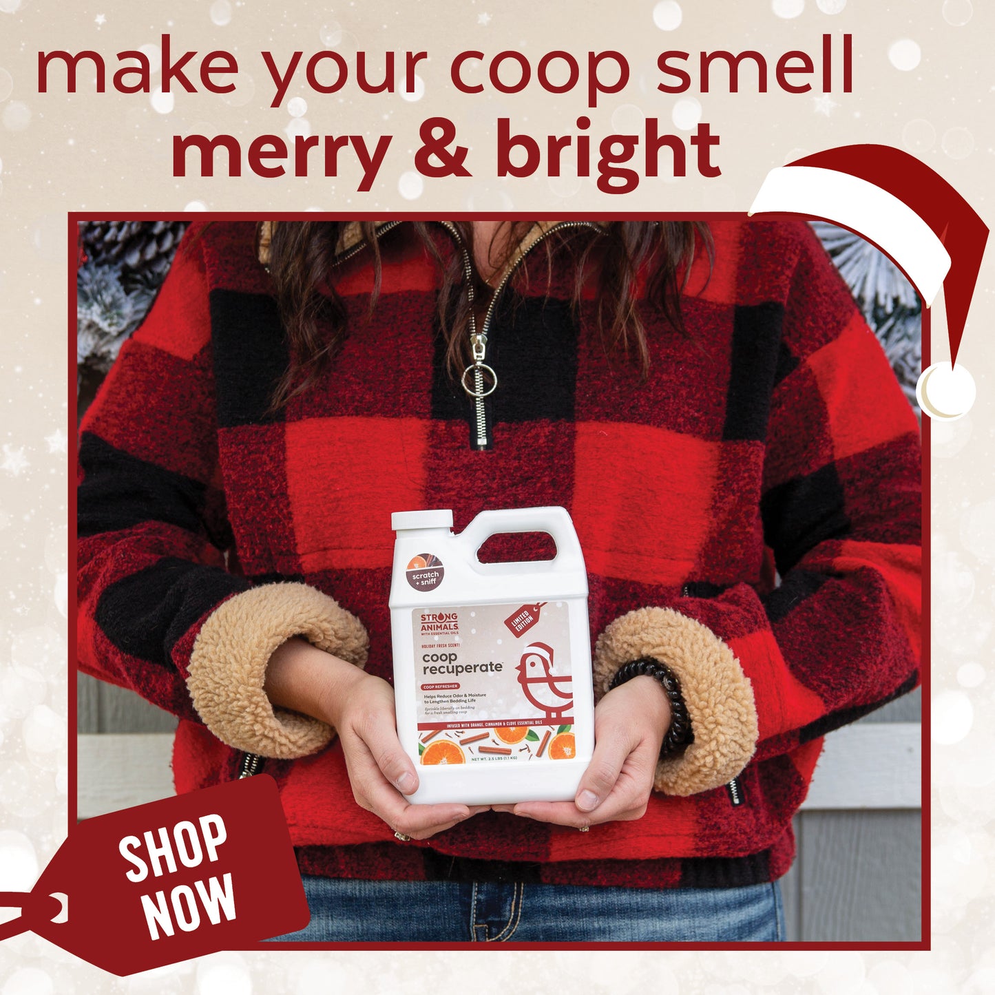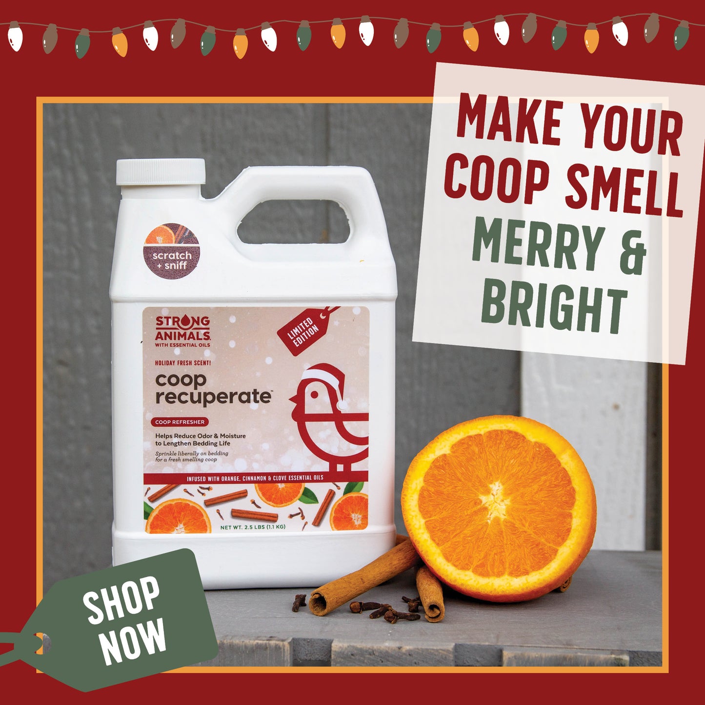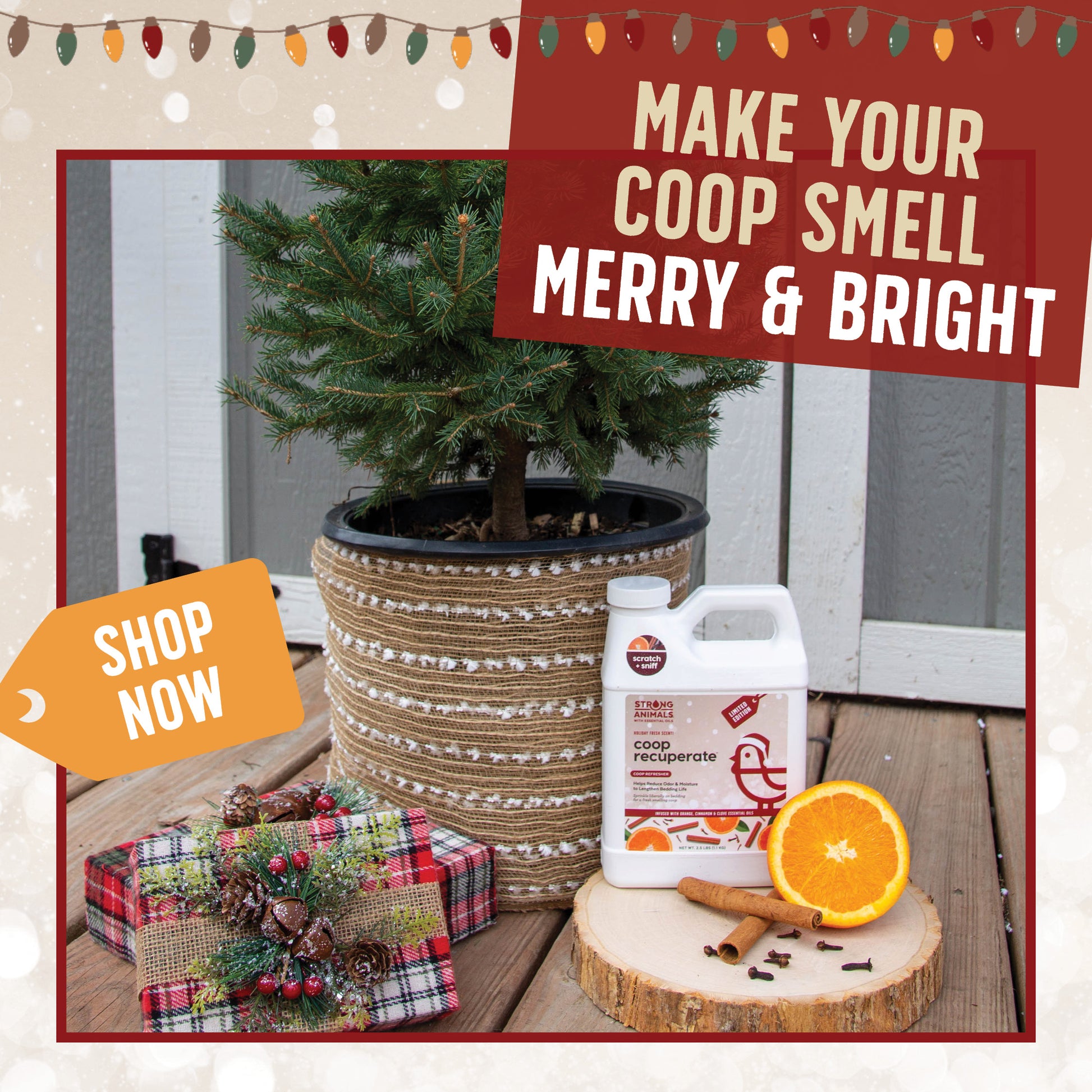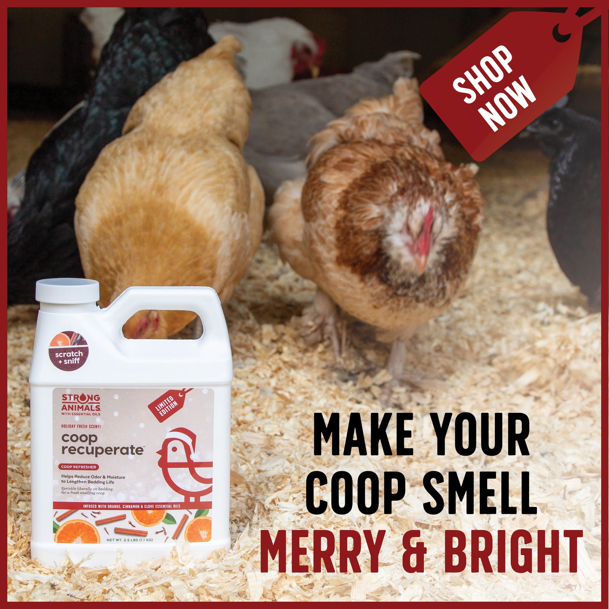 This holiday, give the gift that keeps giving – a sweet-smelling coop for your loved ones. Buy now and surprise your feathered friends with Coop Recuperate Orange Spice this season! It’s also the perfect gift for your chicken-keeping friends!