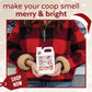 This holiday coop refresher is made with organic essential oils and diatomaceous earth that helps reduce unwanted ammonia odor, absorb moisture, and lengthen bedding life, ensuring your chickens stay cozy and healthy all season long.