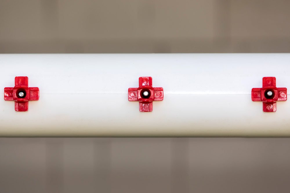 A benefit of using nipple drinkers vs. traditional tray-based watering systems is that you also have the option to place your chosen waterer on the ground, rather than hang it--a big bonus for many of you who have coops or runs that can't accommodate the weight of hanging systems.