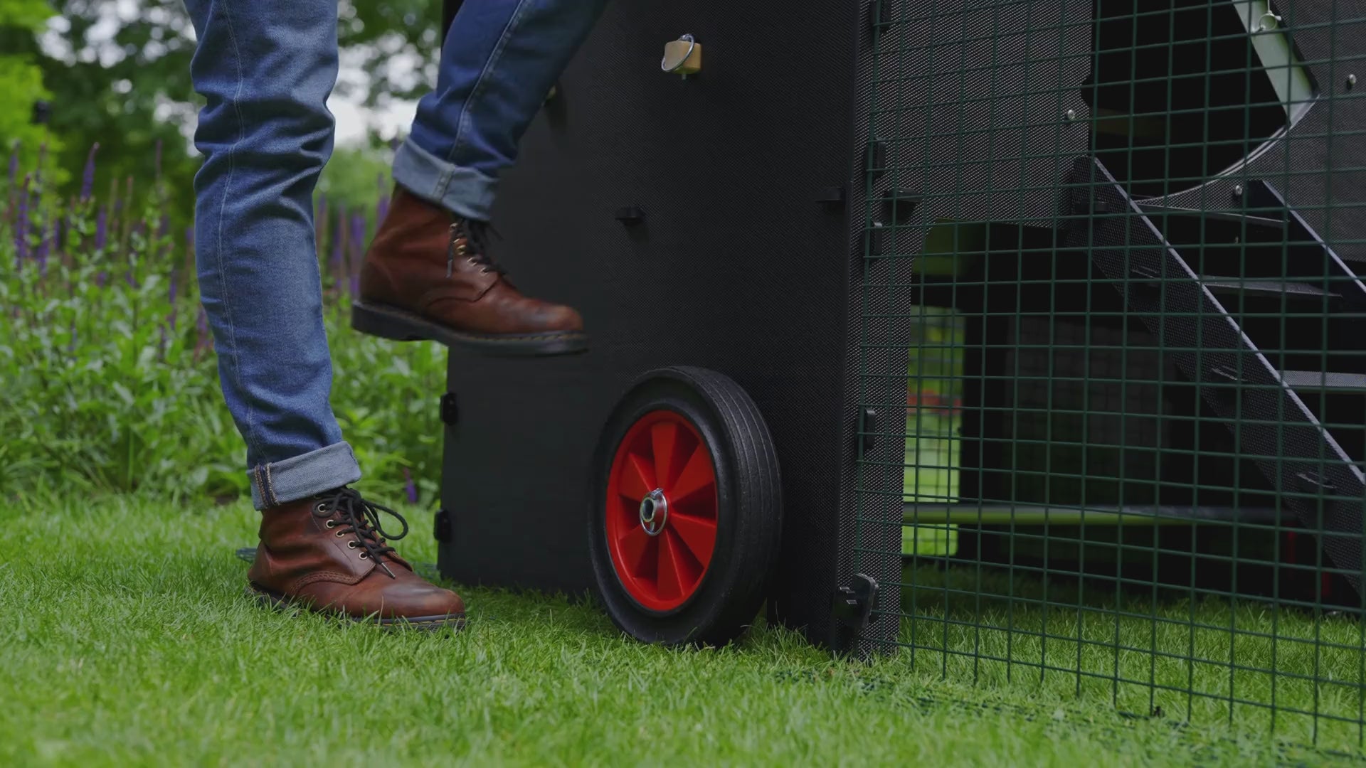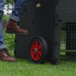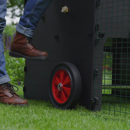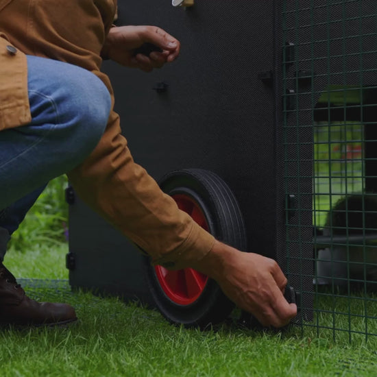 The optional wheelset allows you to effortlessly move your raised coop to wherever you want it in your yard. The quick-release clips let you add or remove the wheelset in seconds, and dual pre-cut slots in the base of the raised coop provide a disengaged resting position. Read more information here.