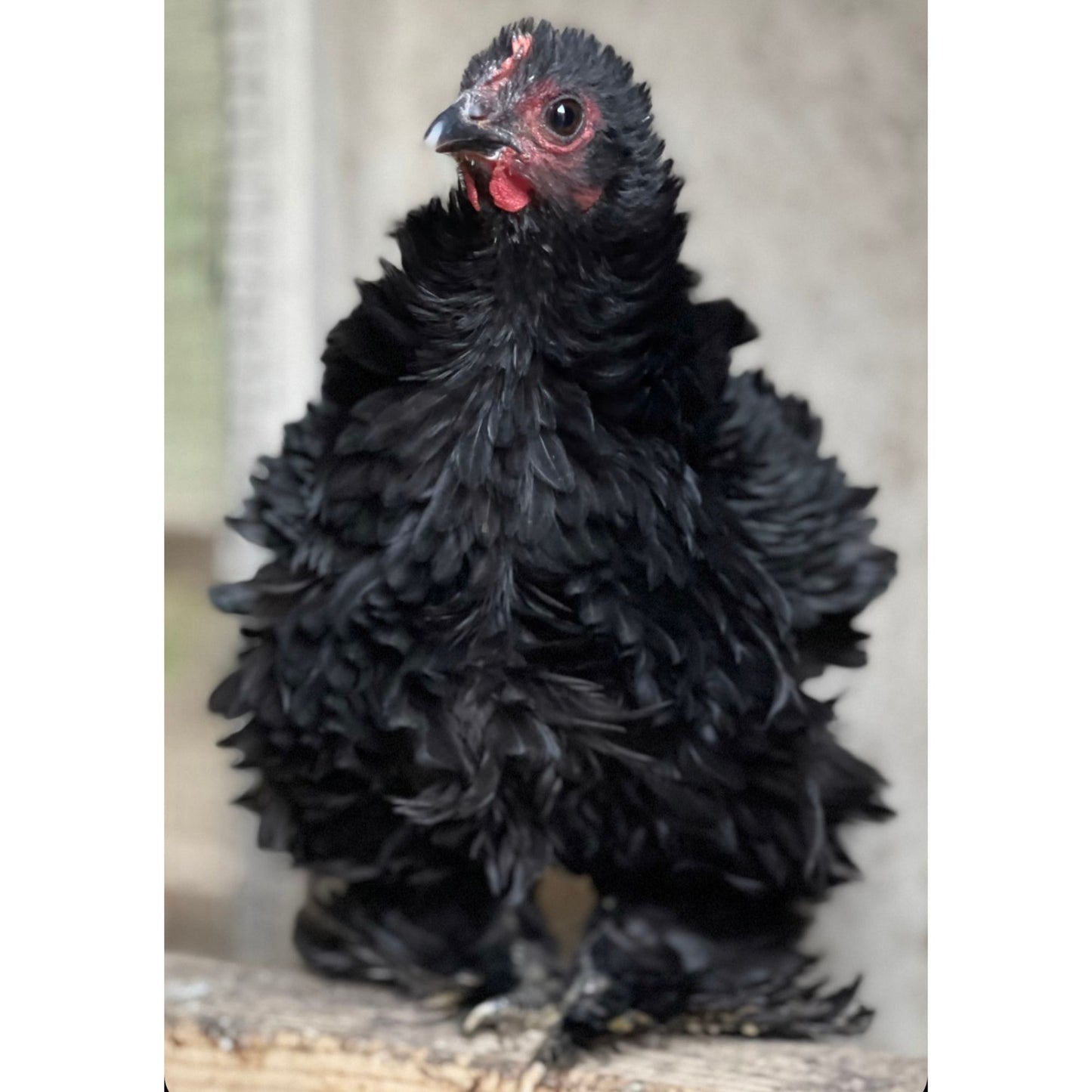 This exquisite Black Frizzle Cochin Bantam is a true sight to behold with its unique frizzled plumage and compact size. With origins in China, the Black Frizzle Cochin Bantam has gained popularity for its irresistible charm and striking appearance.