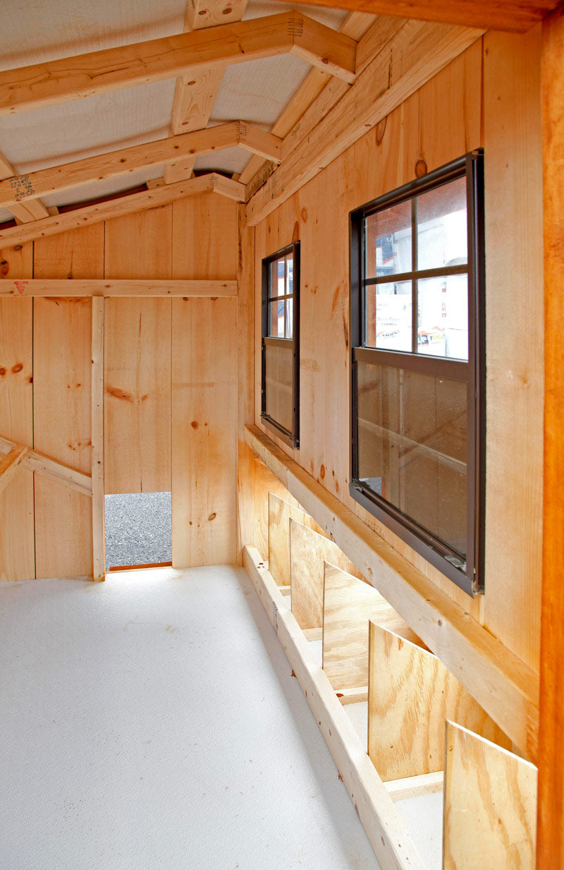 • Two gable vents are available as an upgrade for additional airflow in the coop. They help hot air escape and allow fresh air to circulate, creating a healthier environment for the flock.