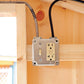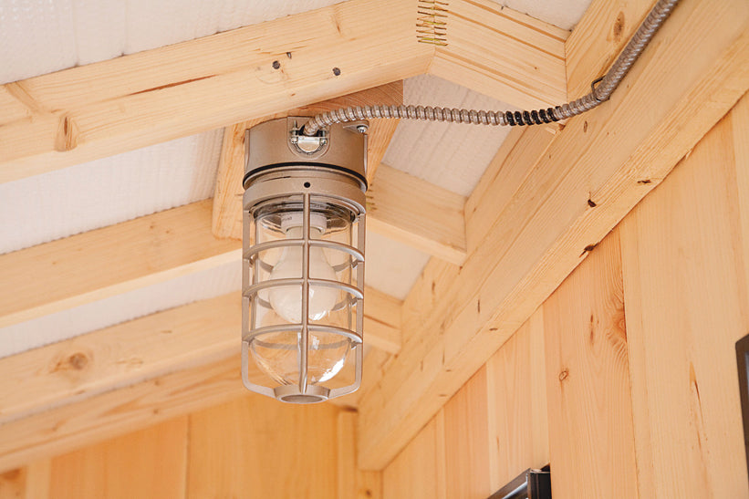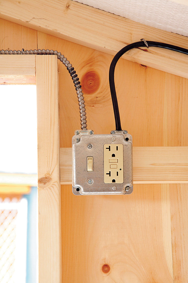 The electrical package includes an interior light fixture and light switch, an outlet with two receptacles, and it comes with an extension cord hookup to attach to your primary electricity source. The receptacles can be used to plug in your auto chicken door or heated roost.