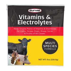 Product Name: Durvet Vitamins & Electrolytes Water Soluble Premix (8oz, makes 64 doses)